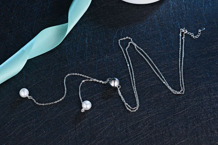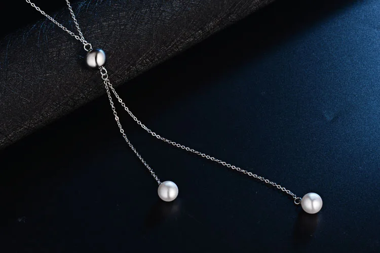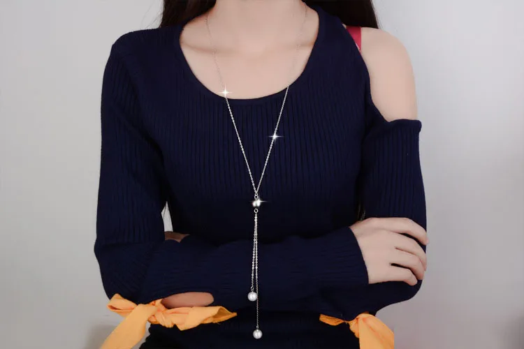 Fashion 925 Sterling Plata Charm Long Sweater Chain Necklacer For Women Pearl Rhinestone Choker Jewelry Accessories Gift