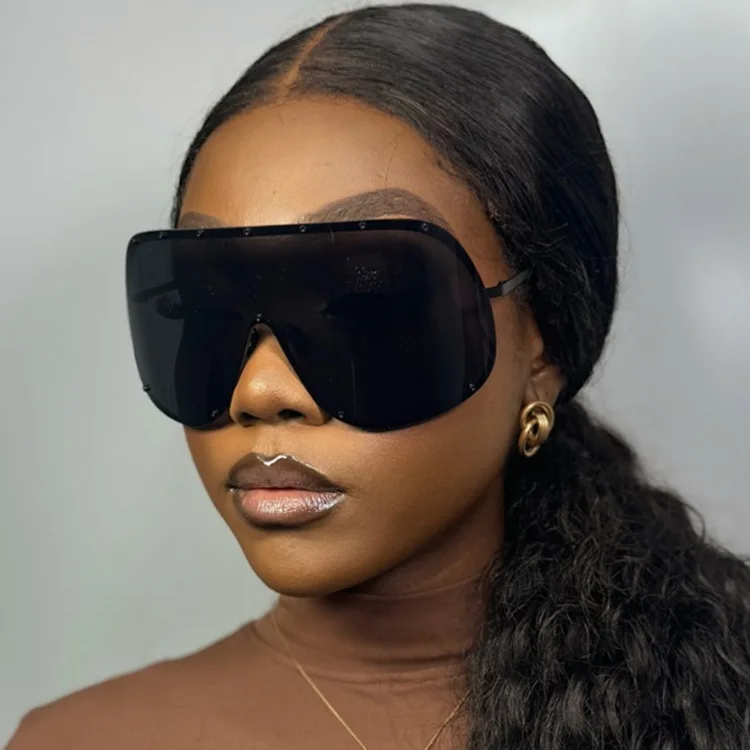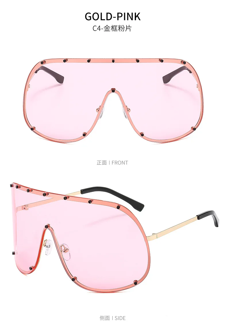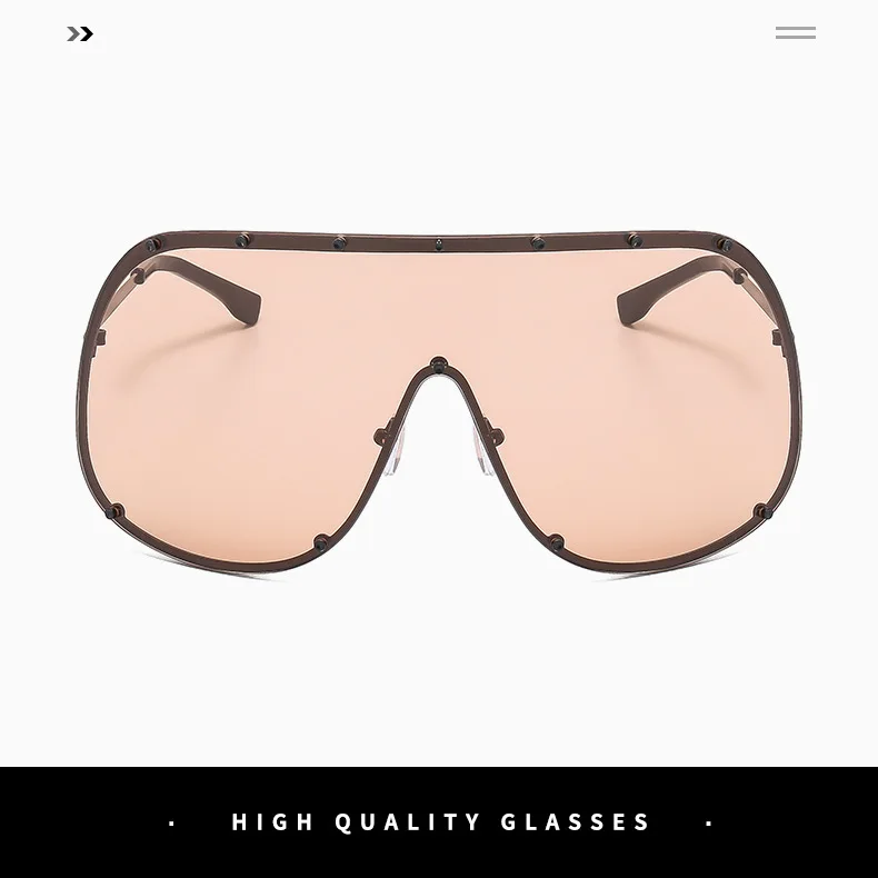 Oversized Metal Rimless Integrated Windproof Sunglasses For Women 2025 Trends Y2k Luxury Brand Design Sun Glasses Unisex UV400