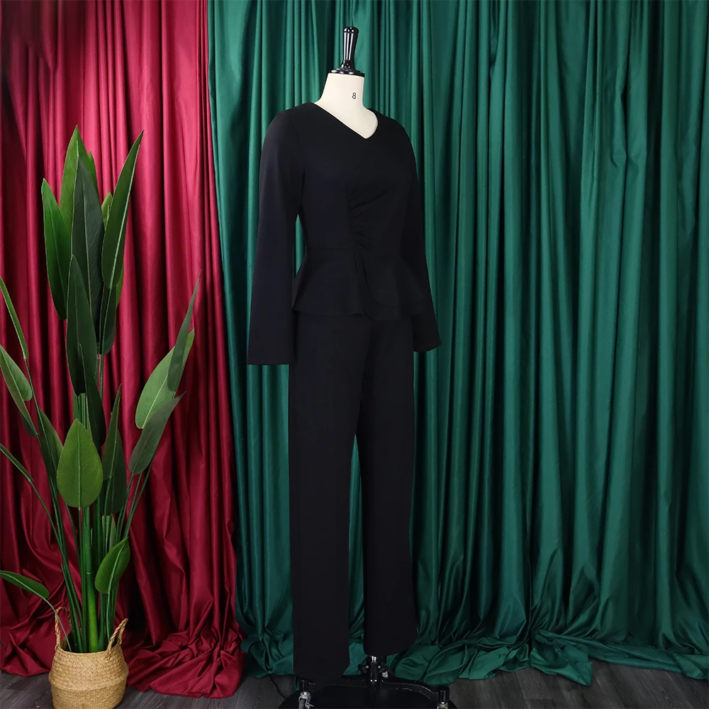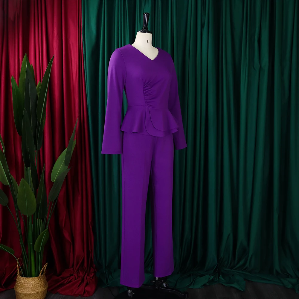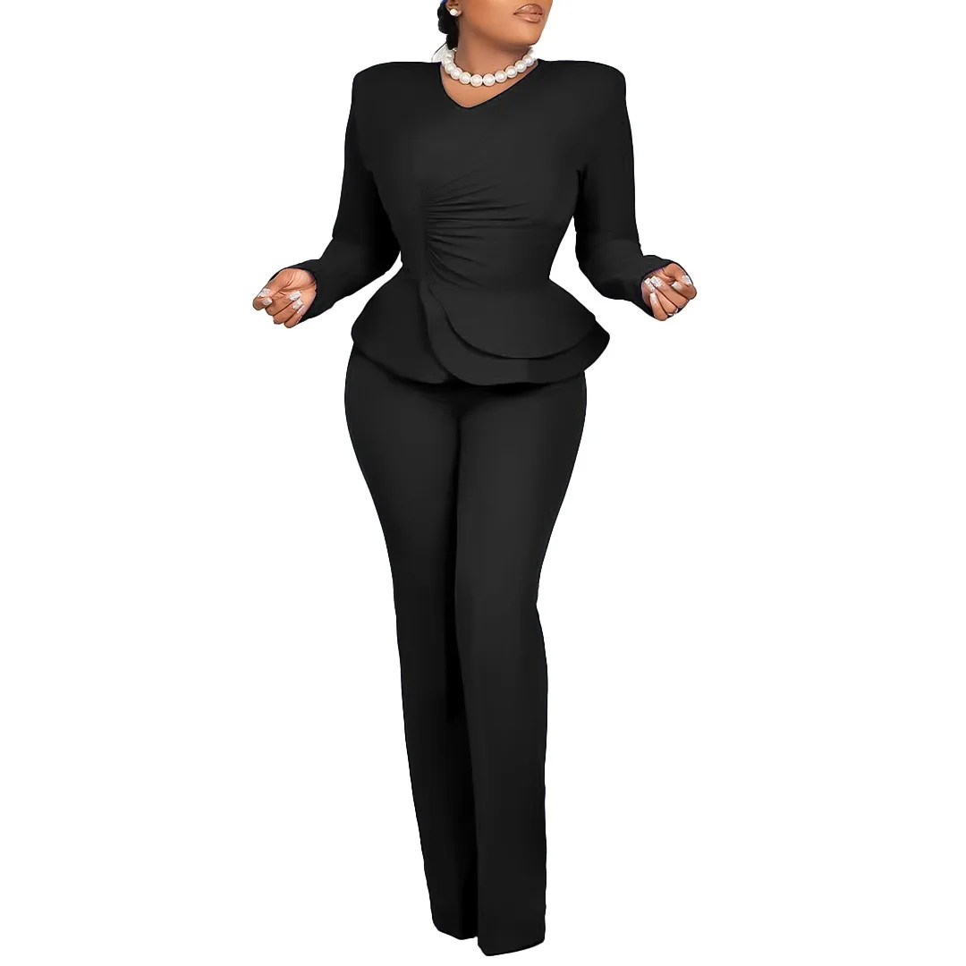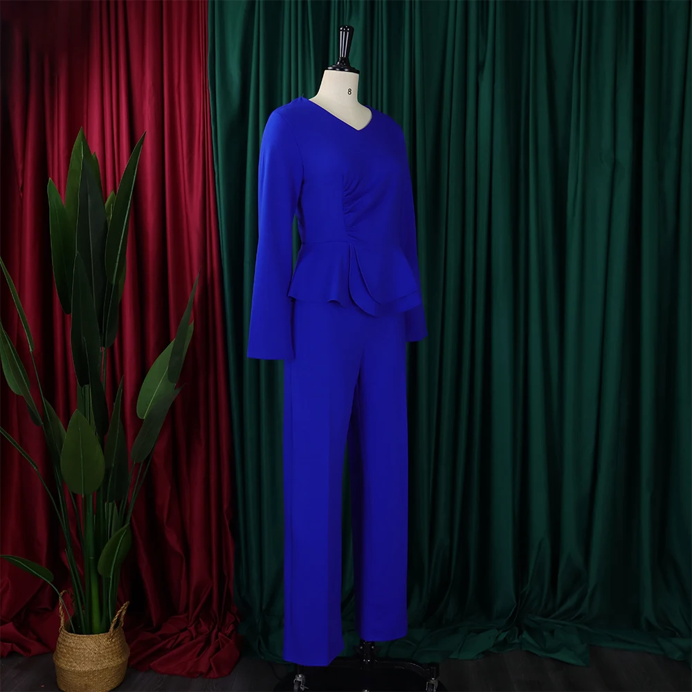 Women 2 Pieces Pants Sets Blouse V Neck Full Sleeve & Long Trousers Straight Elegant Ladies Birthday Party Dinner Outfits Cloth